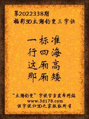 福彩第2022338期3d太湖字谜:一标准,行四海,这厢高,那厢矮