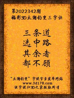 3d马前屁解太湖字谜第2022342期:三条道,选中路