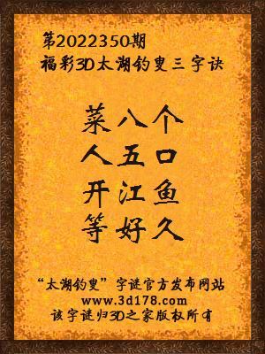 解3d第2022350期太湖字谜: