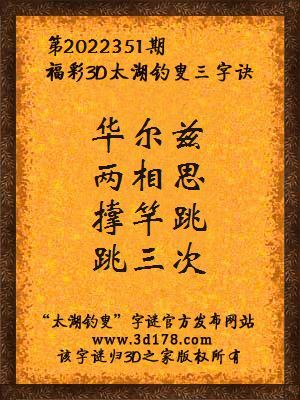 福彩第2022351期3d太湖字谜:华尔兹,两相思,撑竿跳,跳三次