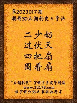 解3d第2023017期太湖钓叟字谜只求奉献独家思路