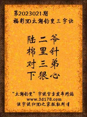3d第2023021期马后炮解太湖字谜之陆二爷