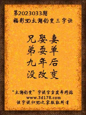 福彩第2023033期3d太湖字谜:兄娶妻,弟耍单,九年后,没改变