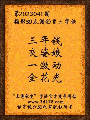 第2023041期专家真实谎言解3d太湖字谜:三年钱