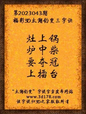 3d第2023043期马后炮解太湖字谜之灶上锅