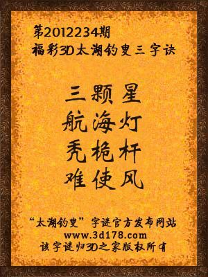 福彩3D第12234期太湖字谜:三颗星,航海灯,秃桅杆,难使风