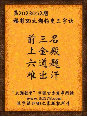 3d马前屁解太湖字谜第2023052期:前三名,上金殿