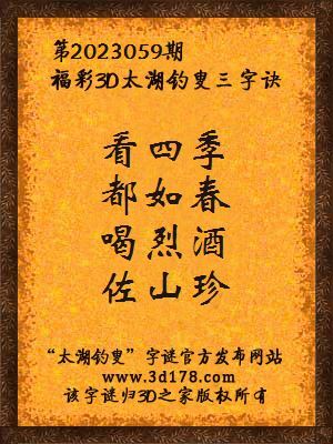 解3d第2023059期太湖字谜: