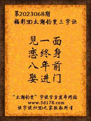 福彩第2023068期3d太湖字谜:见一面,恋终身,八年前,娶进门