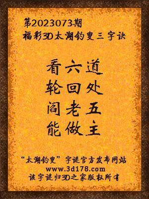 3d第2023073期太湖字谜杰夫哈迪解析:六道轮回