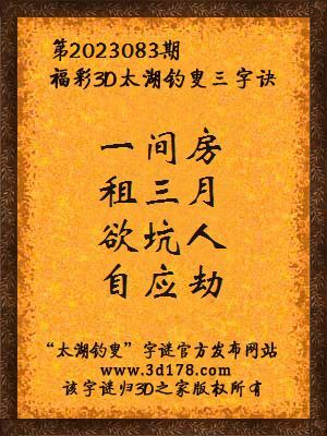 第2023083期3d太湖字谜曹州客解分析预测:租房子