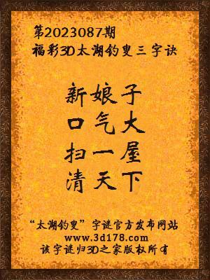 今日3d太湖字谜总汇_2023087期解太湖字谜