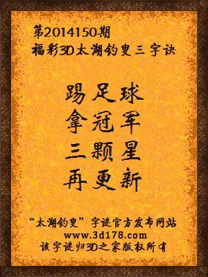 2014年福彩3d第150期太湖钓叟字谜:踢足球,拿冠军,三颗星,再更新
