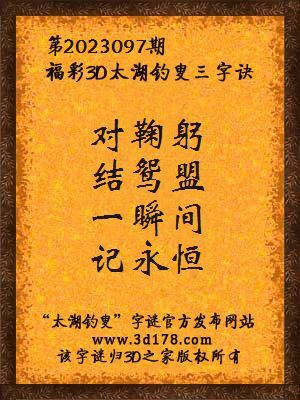 解3d第2023097期太湖字谜: