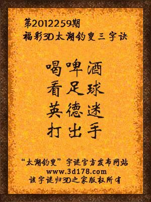 福彩3D第12259期太湖字谜:喝啤酒,看足球,英德迷,打出手