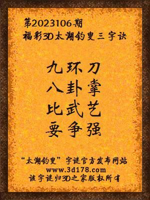 3d马前屁解太湖字谜第2023106期:九环刀,八卦掌