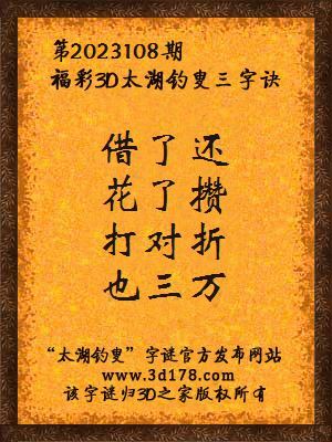 3d马前屁解太湖字谜第2023108期:借了还,花了攒
