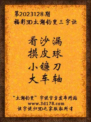 解3d第2023128期太湖字谜: