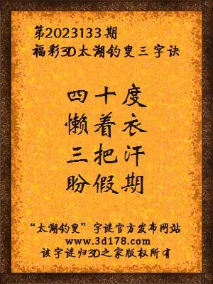 3d第2023133期马后炮解太湖字谜之四十度