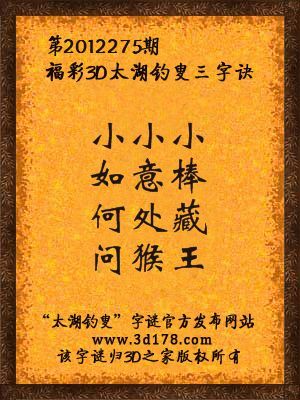 解福彩3d第12275期太湖字谜