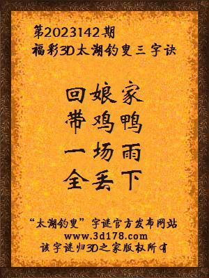 3d太湖字谜第2023142期曹州客解分析预测:遭遇风雨