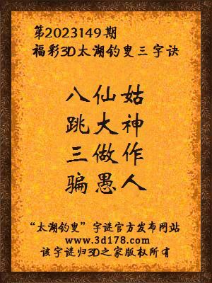 第2023149期专家真实谎言解3d太湖字谜:三做作