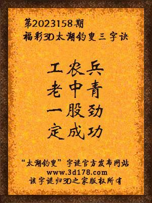 福彩第2023158期3d太湖字谜:工农兵,老中青,一股劲,定成功