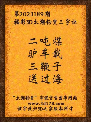 3d第2023189期马后炮解太湖字谜之二吨煤