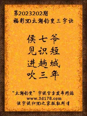 3d第2023202期马后炮解太湖字谜之侯七爷