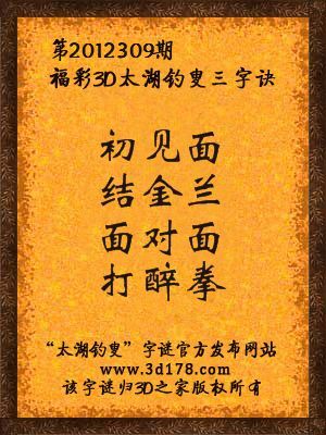 福彩3D第12309期太湖字谜:初见面,结金兰,面对面,打醉拳