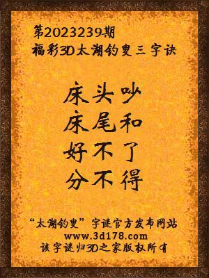 3d马前屁解太湖字谜第2023239期:床头吵,床尾和