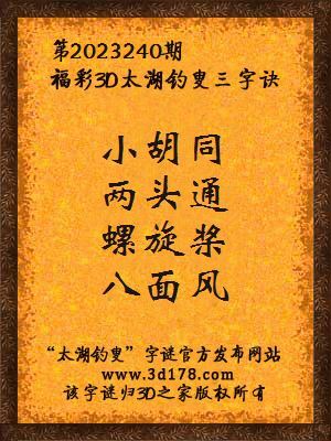 福彩第2023240期3d太湖字谜: