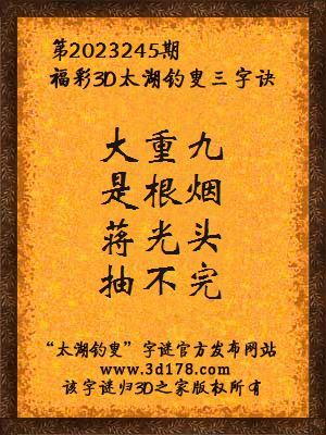 福彩第2023245期3d太湖字谜:大重九,是根烟,蒋光头,抽不完