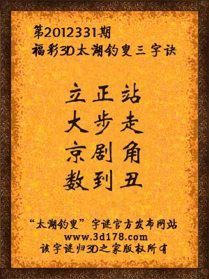 福彩3D第12331期太湖字谜:立正站,大步走,京剧角,数到丑
