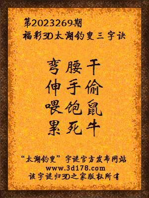 3d马前屁解太湖字谜第2023269期:弯腰干,伸手偷