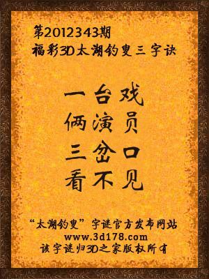 福彩3D第12343期太湖字谜:一台戏,俩演员,三岔口,看不见