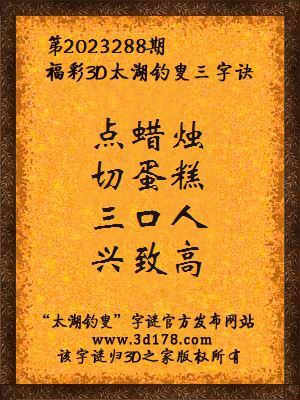 福彩第2023288期3d太湖字谜:点蜡烛,切蛋糕,三口人,兴致高