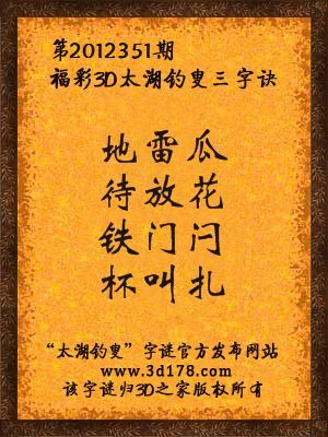 福彩3D第12351期太湖字谜:地雷瓜,待放花,铁门闩,杯叫扎