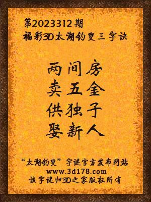解3d第2023312期太湖钓叟字谜只求奉献独家思路