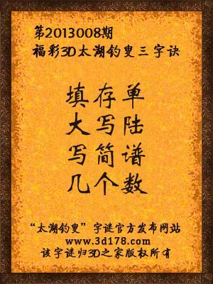 福彩3D第13008期太湖字谜:填存单,大写陆,写简谱,几个数