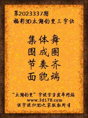 福彩第2023337期3d太湖字谜:集体舞,围成圈,节奏齐,面貌端