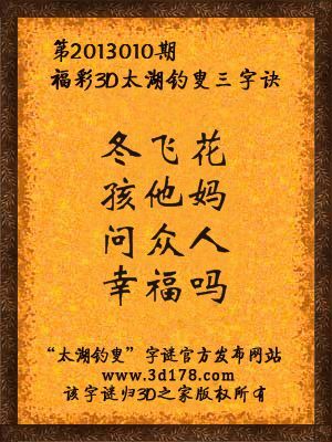 福彩3D第13010期太湖字谜:冬飞花,孩他妈,问众人,幸福吗