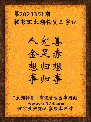 福彩第2023351期3d太湖字谜:人完善,金足赤,想归想,事归事