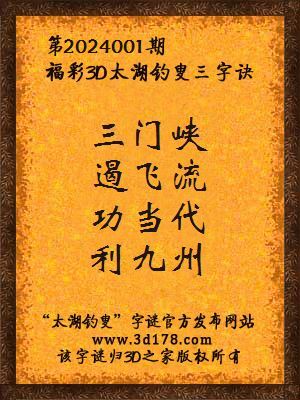 福彩第2024001期3d太湖字谜:三门峡,遏飞流,功当代,利九州