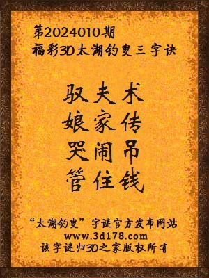 3d第2024010期马后炮解太湖字谜之驭夫术