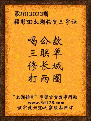 福彩3D第13023期太湖字谜:喝公款,三联单,修长城,打两圈