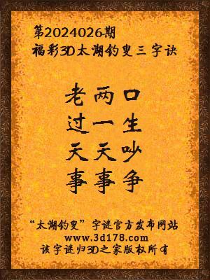 今日3d太湖字谜总汇,3d之家为您详细解答2024026期3d太湖字谜,并汇总多位专家精解太湖字谜供参考。