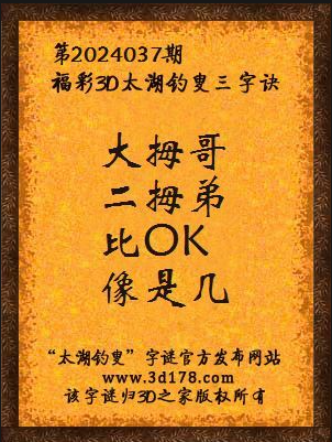 今日3d太湖字谜总汇_2024037期解太湖字谜