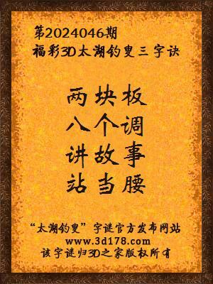 下面开始解3d第2024046期太湖字谜:两块板,八个调,讲故事,站当腰
