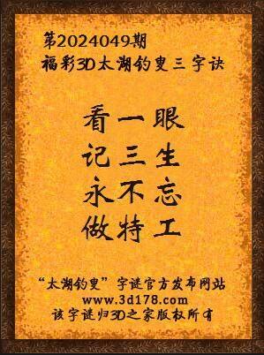 3d第2024049期太湖字谜杰夫哈迪解析:永不忘